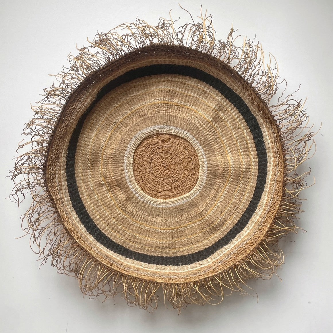 Fibres and palm inflorescence fold and stretch. Reflecting how the land breaths, listens and contours shift, textures linger, memory of place held quietly