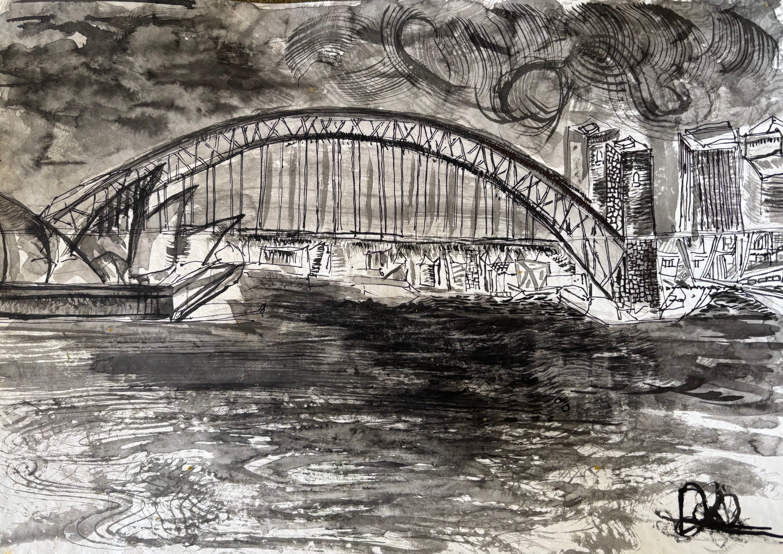 Depicting the Sydney Harbour Bridge, this work frames migration and adoption as lifelong crossings, spanning water, memory, and identity between departure, arrival, and belonging.