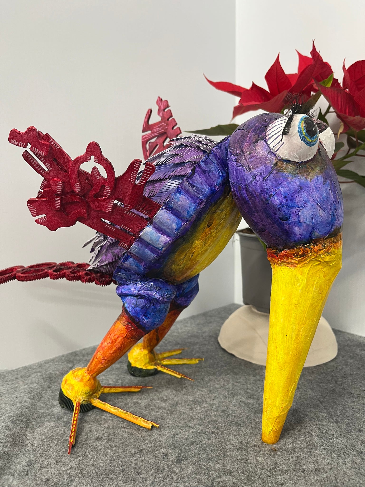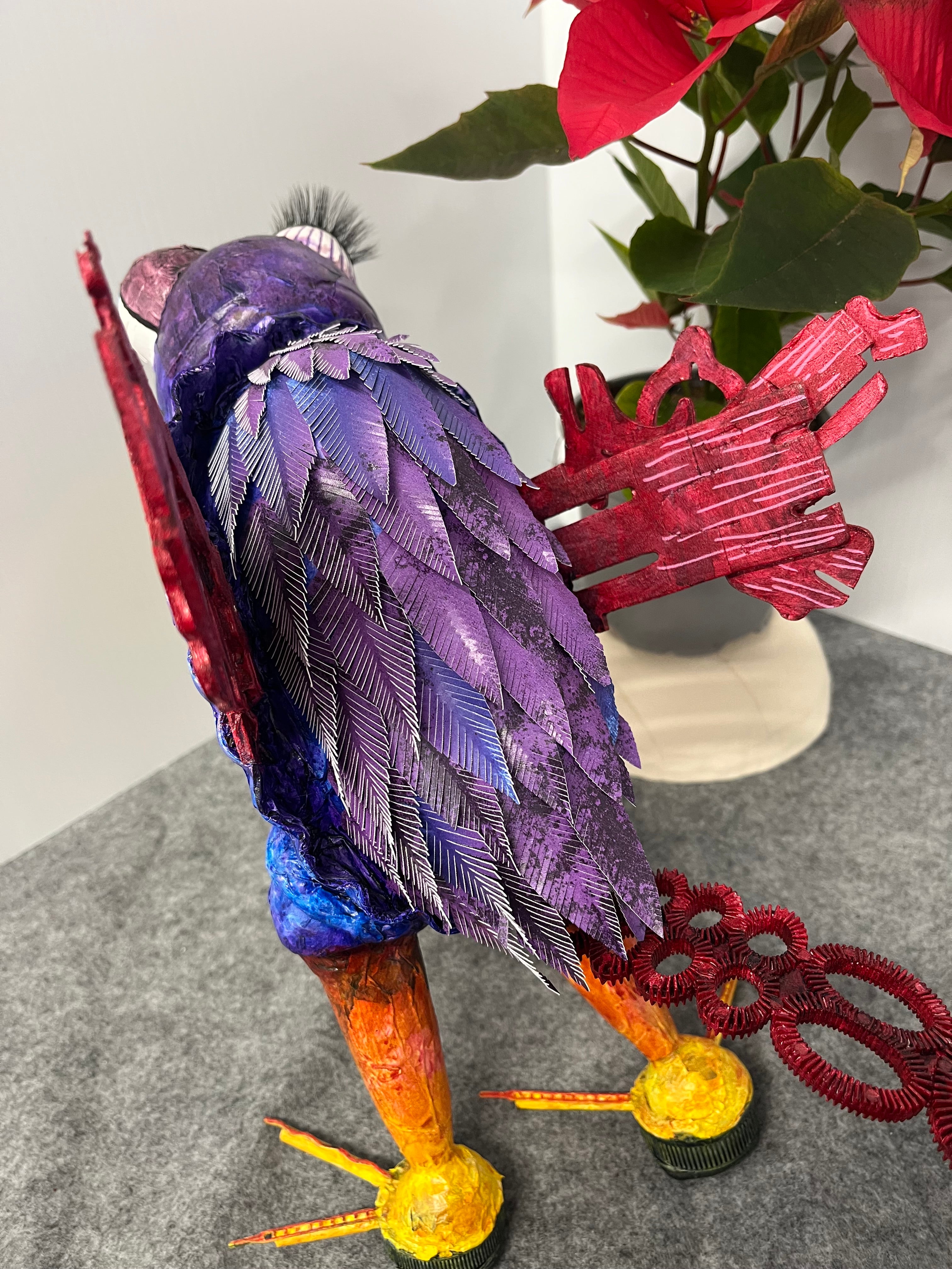 Baking dish, kidney dish, business cards, plastic tubing, puzzle pieces, acrylic paint