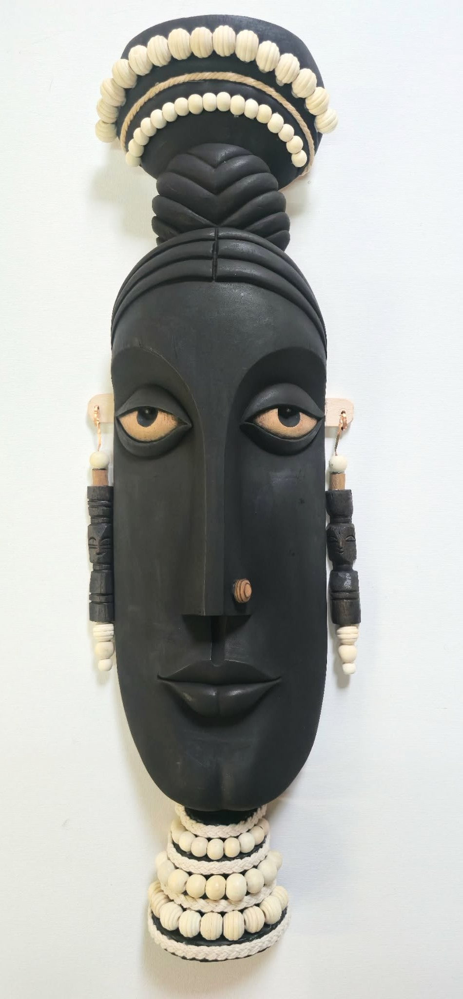 Anaya explores stillness as a vessel of memory. Emerging from silence, the figure carries ancestral presence through shadow, texture, and ritual adornment. Wooden beads encircle her like prayers, evoking lineage carried across distance. Her half-closed gaze does not seek recognition it waits holding histories that survive migration, time, and erasure.