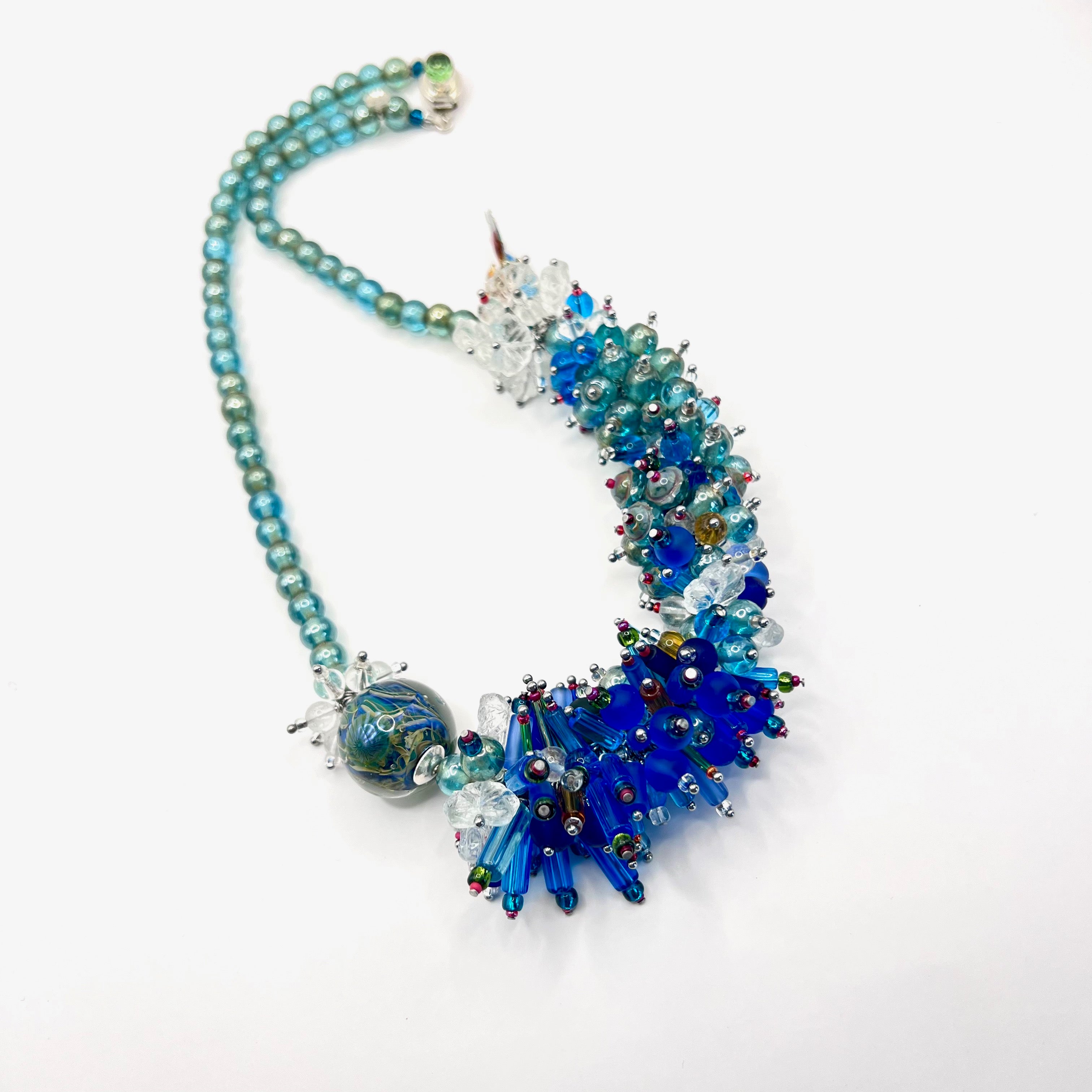 Lampwork glass, recycled glass, enamel, crystal quartx, silver