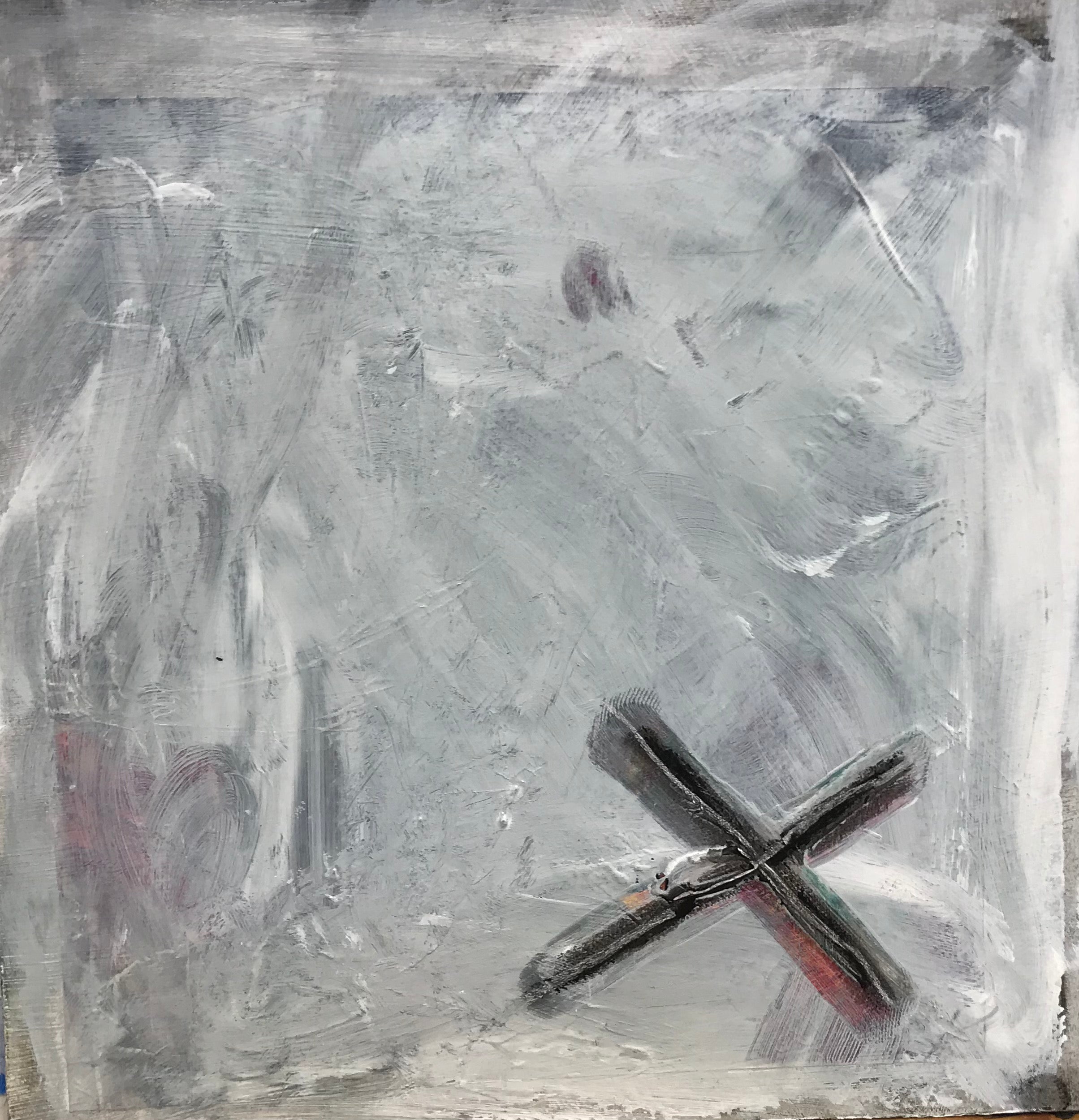 Polyptych from the series 'Dark Winds': Play; BreathLess; CoverUp; X. Abstract works contrasting to the representational drawings of the Life Drawing workgroup.